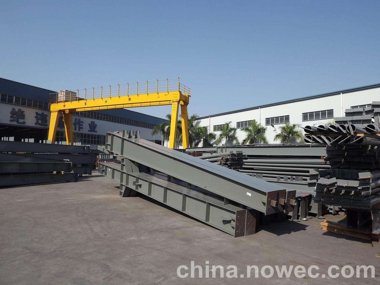 条状单元一般沿长跨方向分割,其宽度约为1~3个网格,其长度为l2或l2/2(l2为短跨跨距)。块状单元一般沿石嘴山网架平面纵横向分割成矩形或正方形单元。每个单元的重量以现有起重机能胜任为准。条(块)与条(块)之间可以直接拼装,也可空一网格在高空拼装。由于条(块)状单元是在地面拼装,因而高空作业量较高空散装法大为减少,拼装支架也减少很多,又能充分利用现有起重设备,故较经济。这种安装方法适用于分割后网架的钢度和受力状况改变较小的各类中小型网架,如两向正交正放四角锥、正放抽空四角锥等网架。